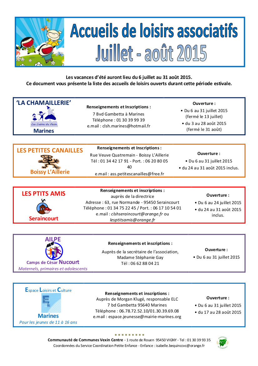La communauté de communes Vexin centre vous propose de nombreuses solutions d'accueil pour vos enfants cet été: