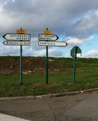 Deux panneaux au croisement de la D66 et la D51 , avant Le Perchay en venant de la D14