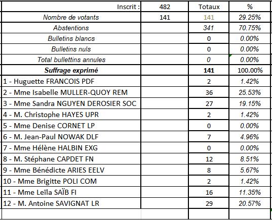Ci-dessous les résultats du premier tour des élections législatives pour notre commune de Santeuil, ce dimanche 28 janvier 2018.