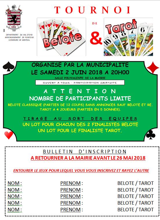 TOURNOI DE BELOTE & TAROT ORGANISE PAR LA MUNICIPALITE LE SAMEDI 02 JUIN 2018 A 20H