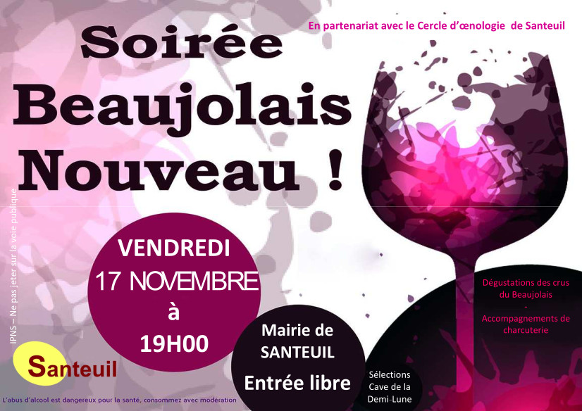 À cette occasion, la mairie, en partenariat avec le Cercle d'œnologie de Santeuil, vous propose le vendredi 17 novembre à 19h :