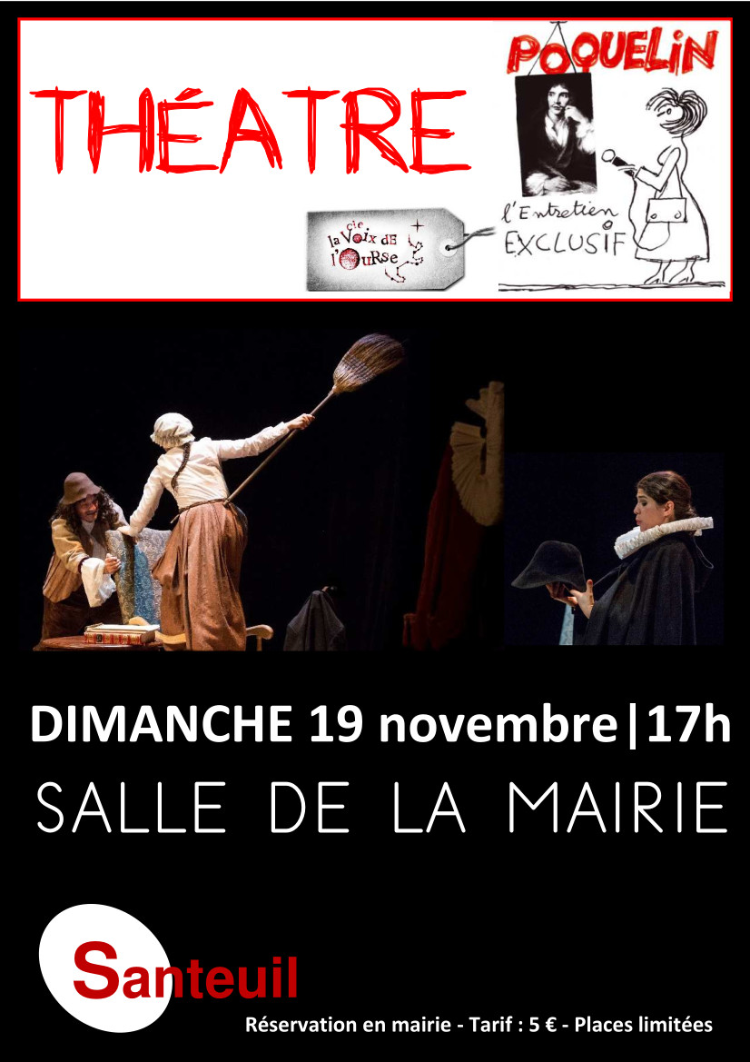 * Réservation en mairie ou par mail Cette adresse e-mail est protégée contre les robots spammeurs. Vous devez activer le JavaScript pour la visualiser. en indiquant bien votre nom et le nombre de places. La réservation ne sera validée qu'à réception du règlement par chèque libellé à l’ordre du Trésor Public. Aucun paiement accepté le jour de la représentation.